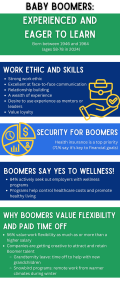 Given the different perceptions and needs among the generations, it’s no wonder that finding a one size-fits-all benefits package can be hard.  This infographic explains what employee benefits Baby Boomers value.