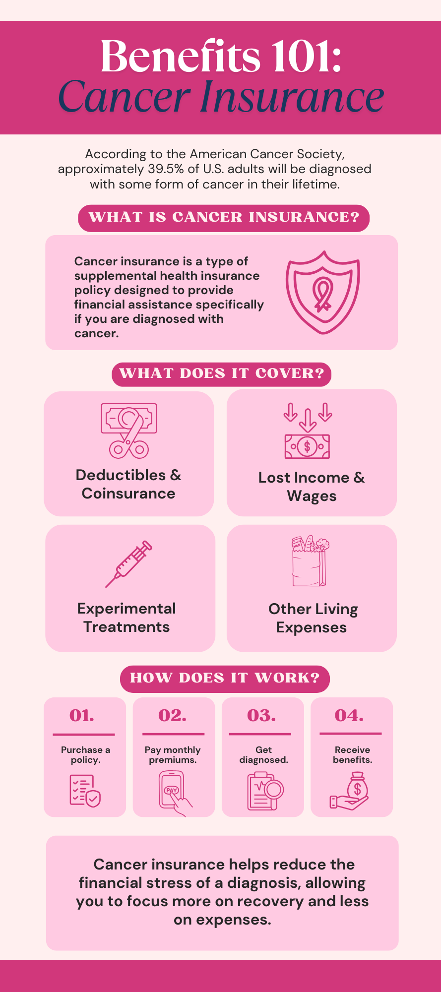 Cancer doesn’t just impact your health—it can affect your wallet, too. Cancer insurance helps cover expenses your regular health plan might miss.  Learn more about the basics of cancer insurance in our latest infographic.